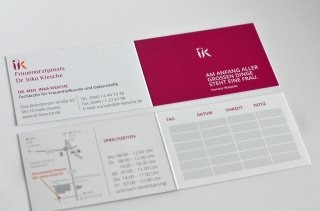 Das Logo sollte eigentlich "nur" ein Redesign werden. Letztendlich entstand aber ein Logo, welches die Initialen von Dr. Kiesche und gleichzeitig den Uterus darstellt – ideal für eine Frauenarztpraxis. Auf Basis dessen entwickelte ich das gesamte Erscheinungsbild.